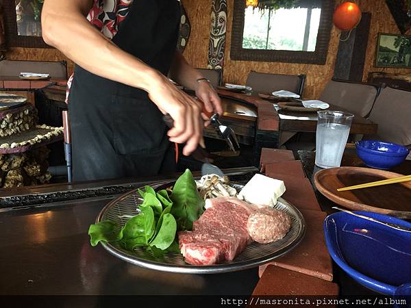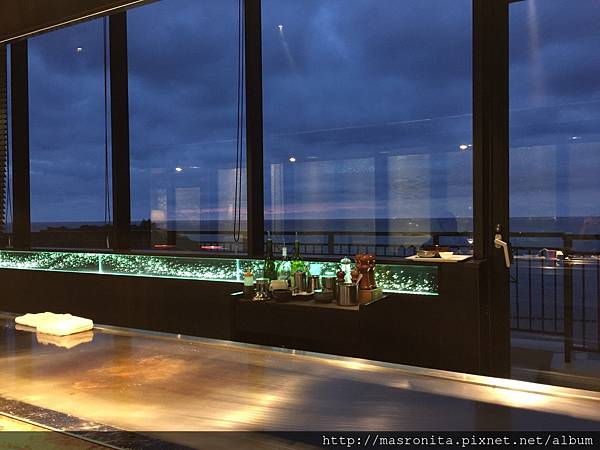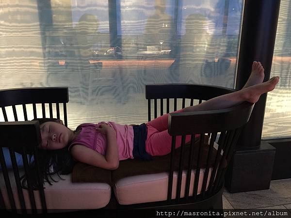 第一晚的晚餐,我們是吃飯店裡的"神戶鐵板燒"從黃昏吃到晚上,一樣是氣氛無敵。餐點也是非常精緻可口。最讓我印象深刻的是,我們吃到一半時,玩了一整天的女兒已體力耗盡,眼皮沉重的坐在椅子上快睡著了,這時服務生馬上走到我身旁,我以為他要提醒我小心別讓小孩跌下去,沒想到他是對我說:可以讓我為您製做一張床嗎?