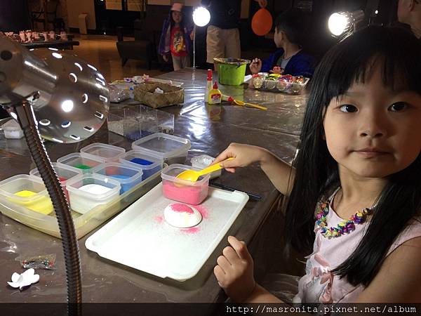 白天飯店海灘玩水,晚上飯店除了有兒童遊戲室、室內游泳池、有ㄧ間不小的賣店可以逛外,還有很受小朋友喜歡的手作DIY,小孩一點都不會無聊喔。