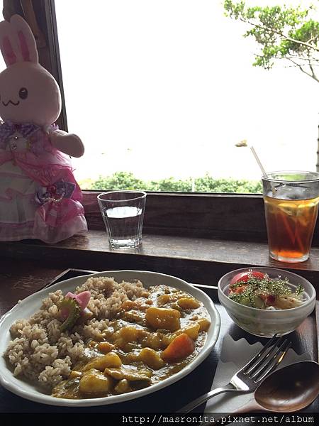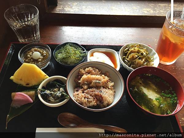 特別推薦一下濃濃沖繩味的南部觀海餐廳--山的茶屋 樂水,最初是被旅遊書上美麗的照片所吸引,雖然它是蔬食料理,但真的超級好吃,在吃了數頓石桓牛後,安排這一頓蔬食料理尤其特別適合,這一頓美味氣氛又好的餐點,成了我們在沖繩最回味不已的一餐^^。